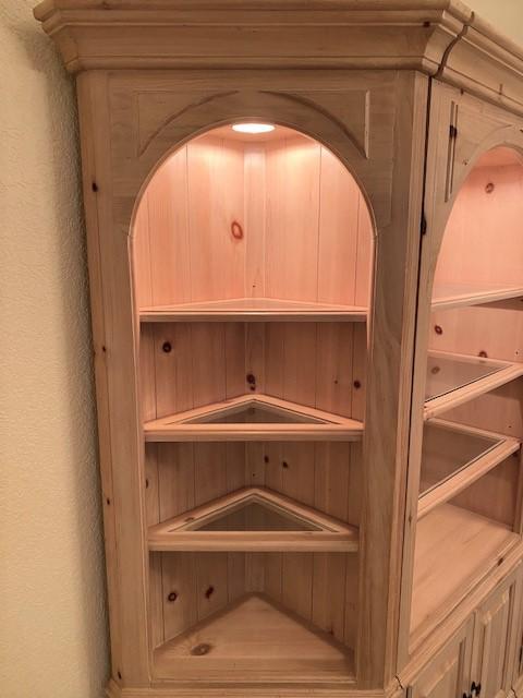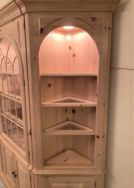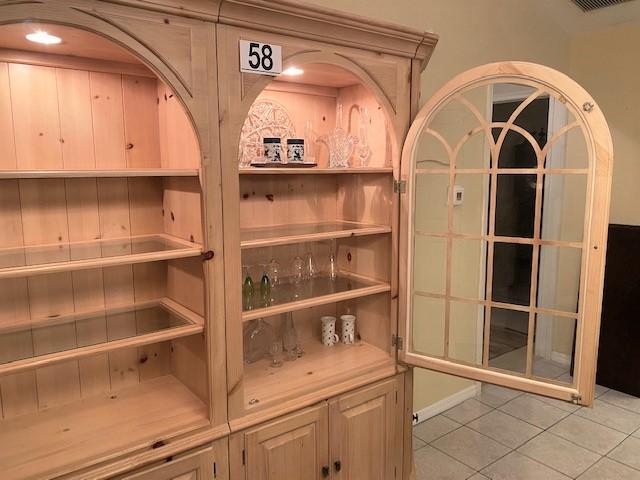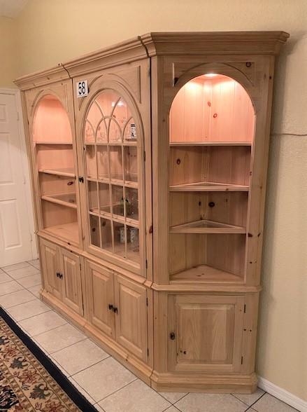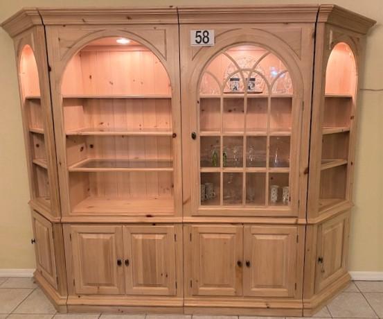 LOT#58DR: Four Piece Unfinished Wood Lighted Hutch with Contents