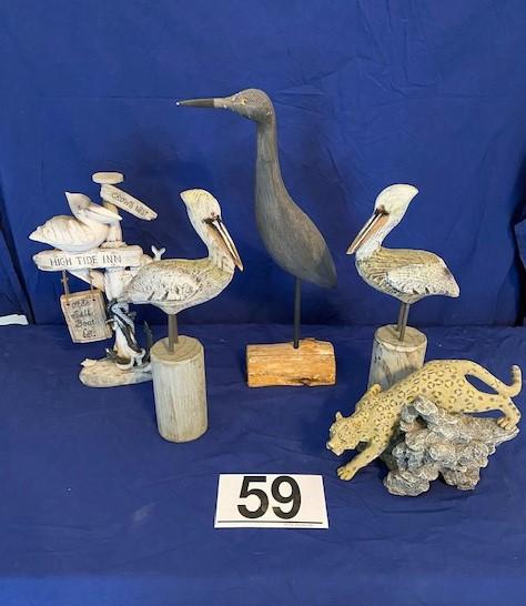 Includes sea birds, leopard, and more. Total of five pieces. Measurement: 19" (tallest)