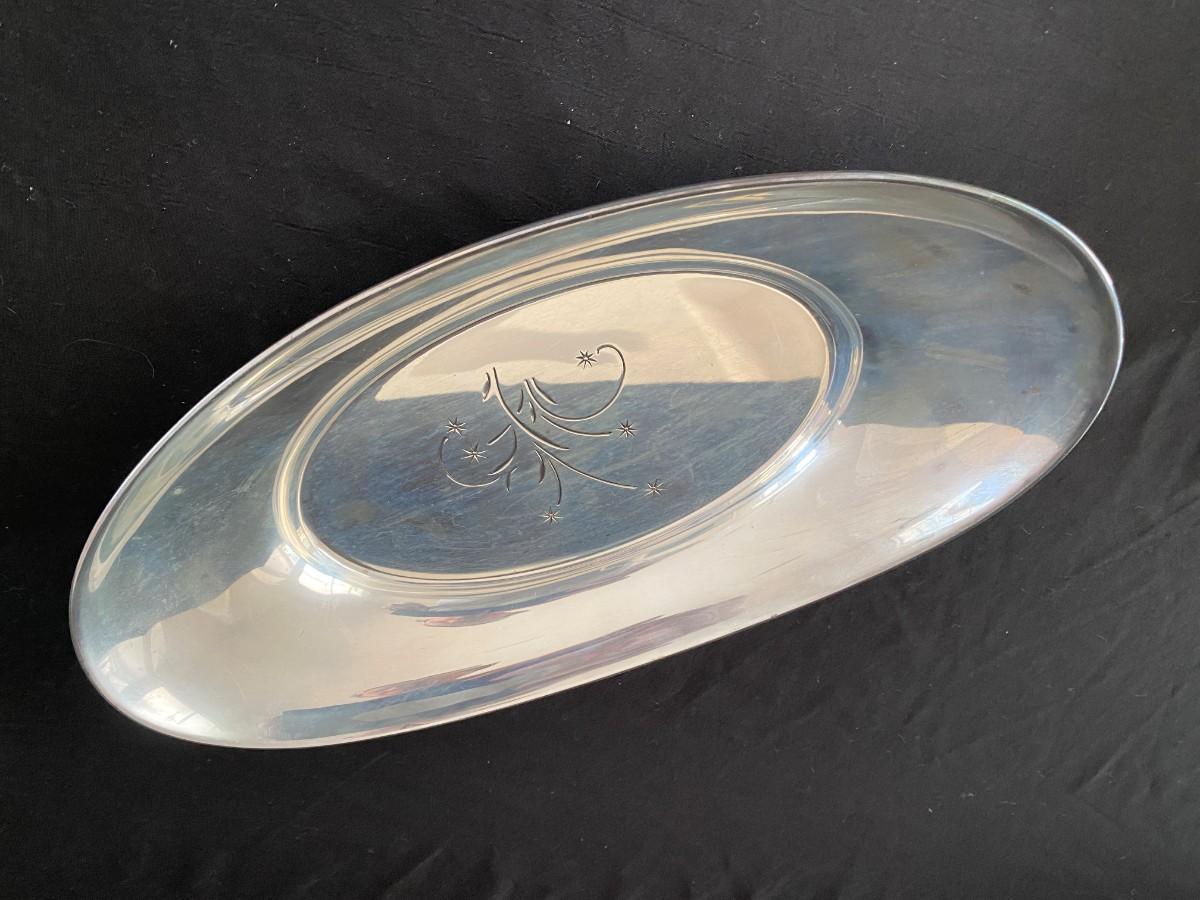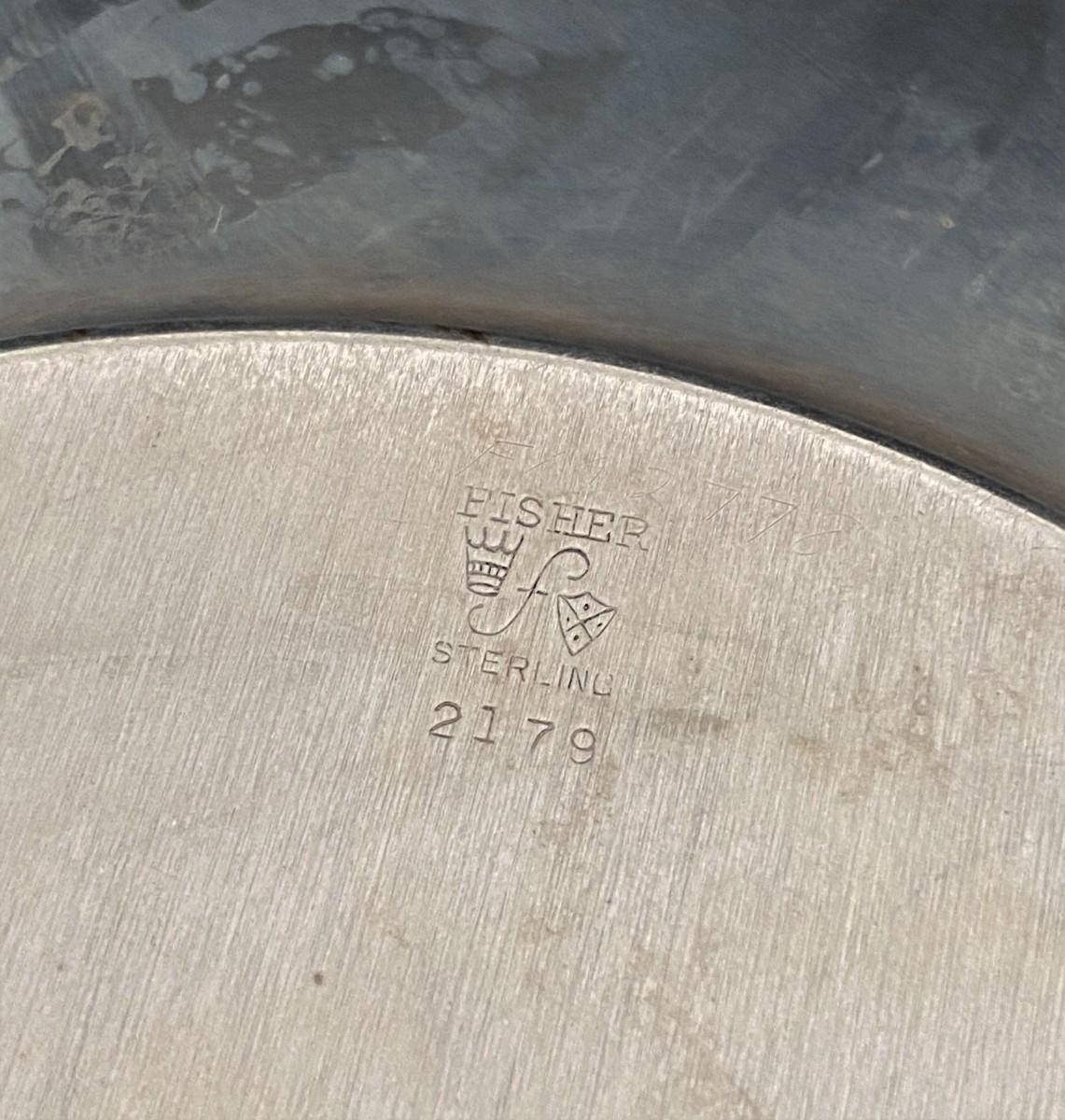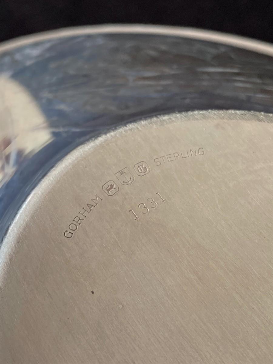 Gorham, Fisher, and other. Two bowls and a plate. Two pieces are monogrammed. 699 grams. Estimated weight of lot: 5 lbs. Measurement: 3 1/2"H x 12"W (together)