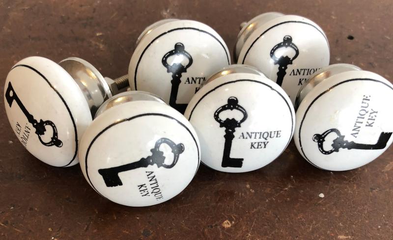 lot/6 Antiwue Key Ceramic Drawer Pulls, Knobs Handle