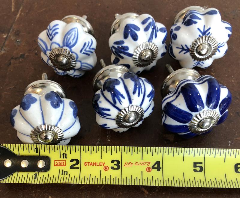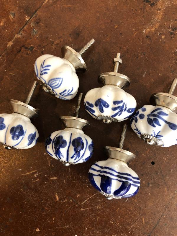Blue delft decorated drawer pulls 6, ships in the US for $4