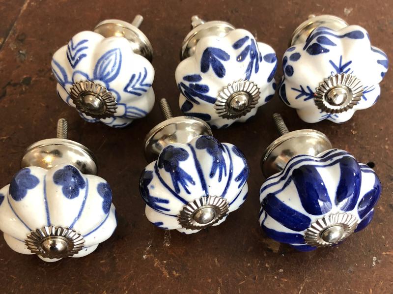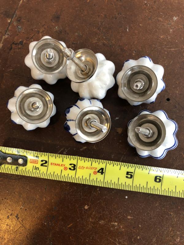 lot/6 Blue Delft Ceramic Drawer Pulls Knobe Handle