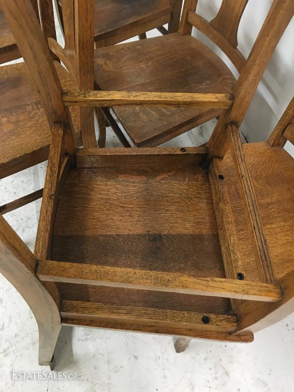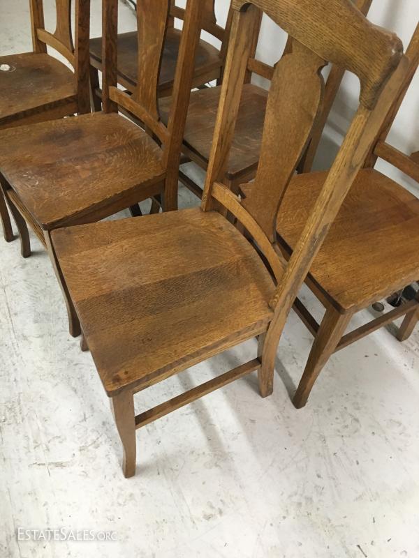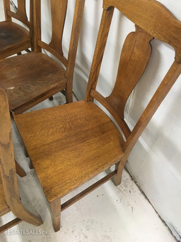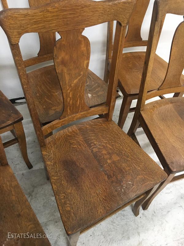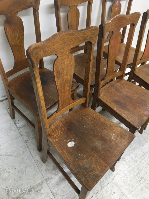Lots of six chairs all one money! in overall good condition, glue joints are tight could use some cleaning. (we also are auctioning a oak pedestal table that would work great with these chairs.)