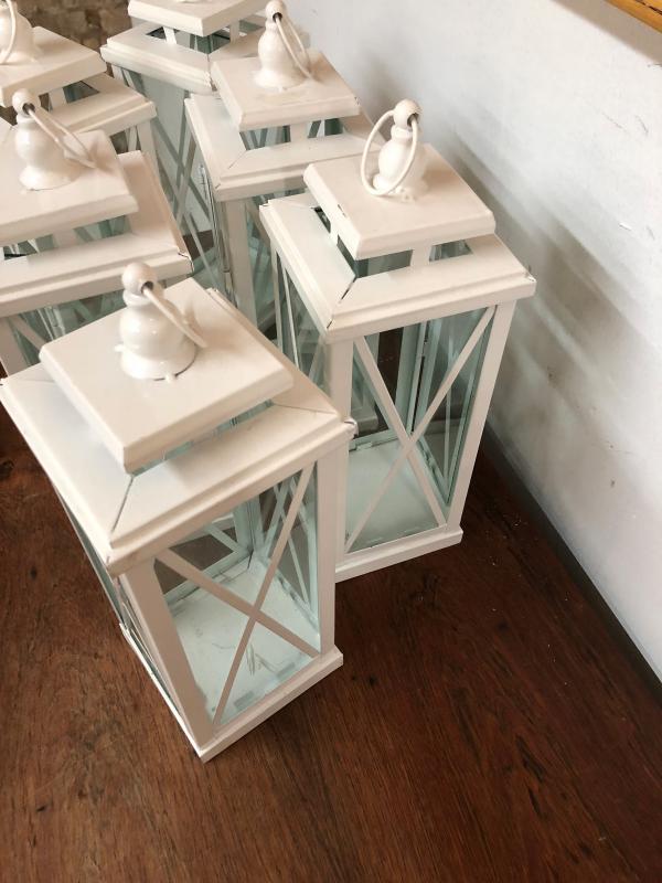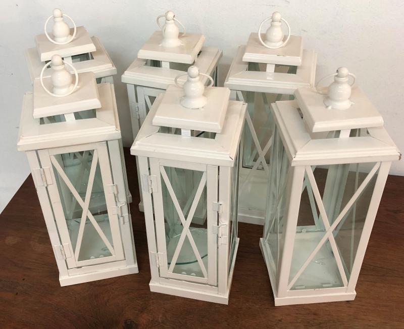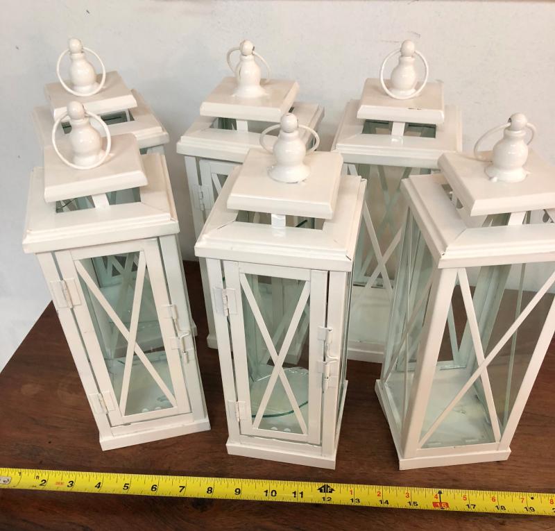 Lot/6 White Candle Lanterns Hurricane Lamps