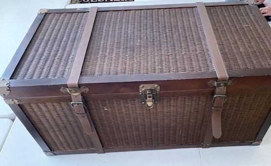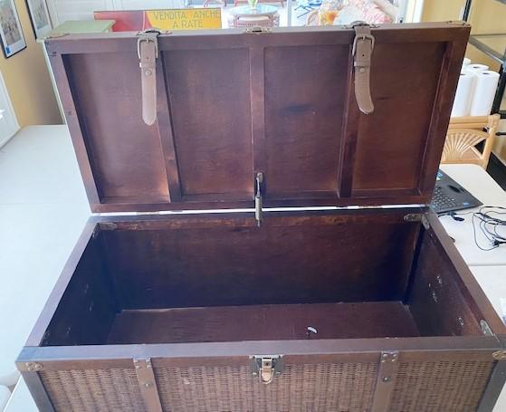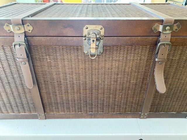 Leather handles and buckles. Measurement: 38"W x 18"H x 19"D