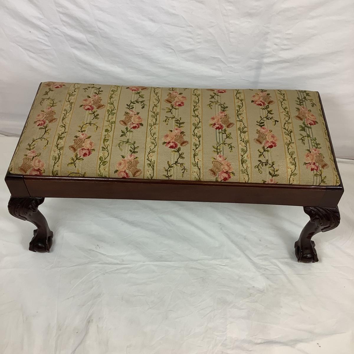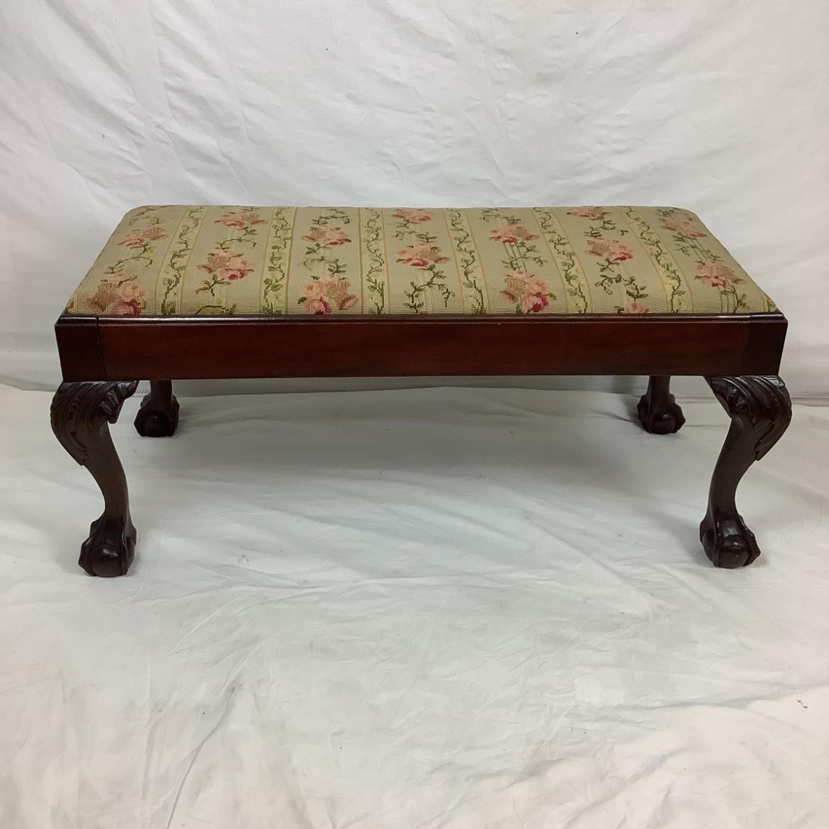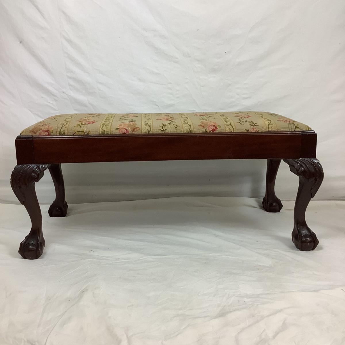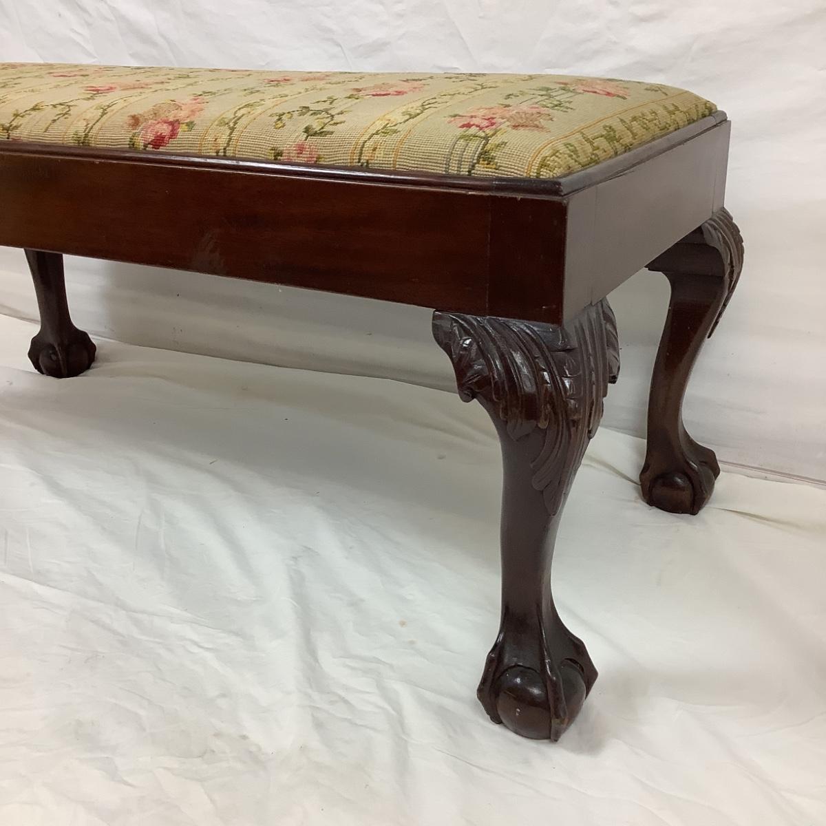 Lot.6171. Antique Mahogany Chippendale Style Ball and Claw Needlepoint Bench