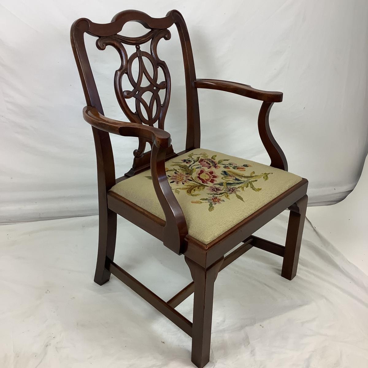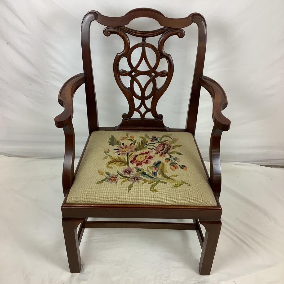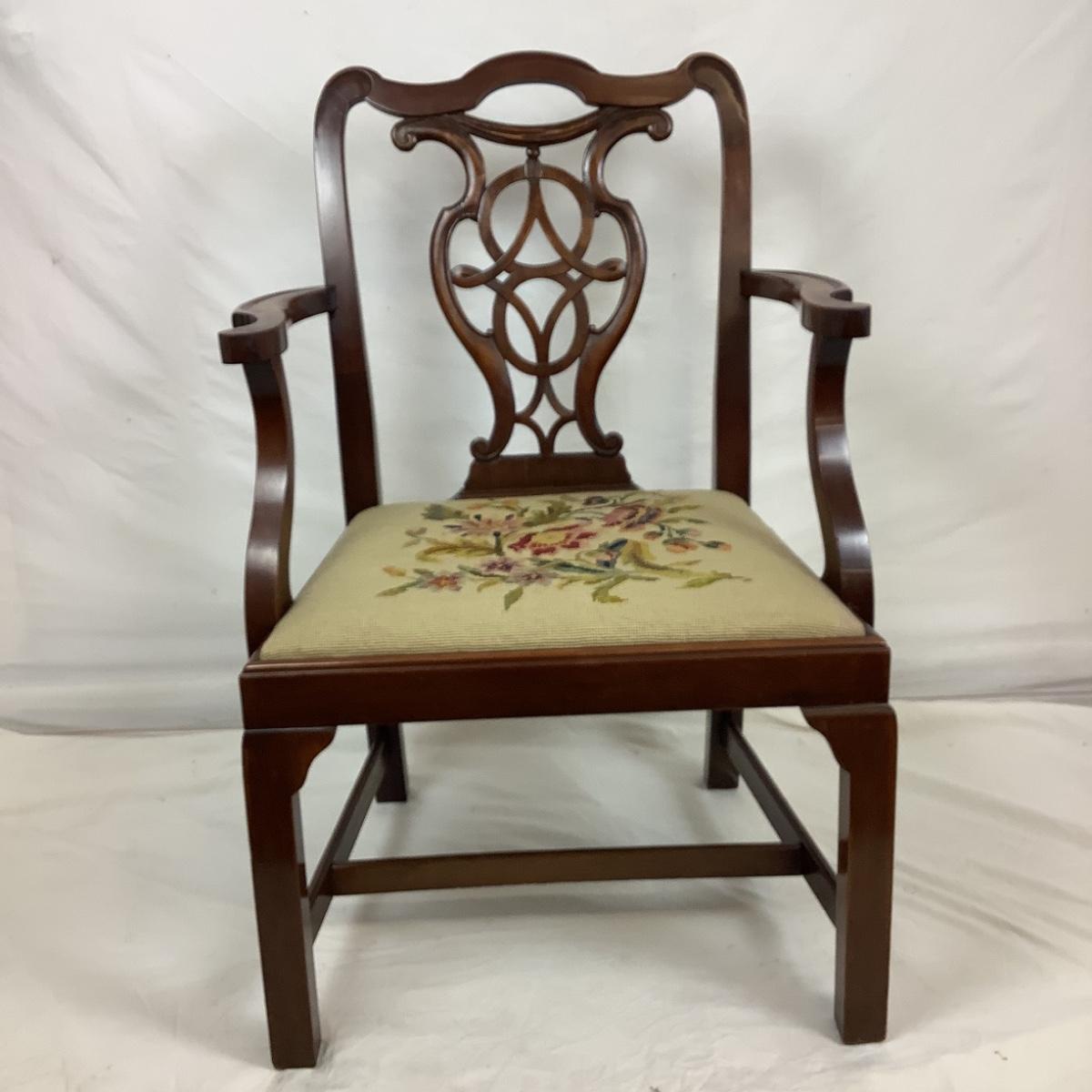 Chippendale Style Antique Mahogany needlepoint arm chair