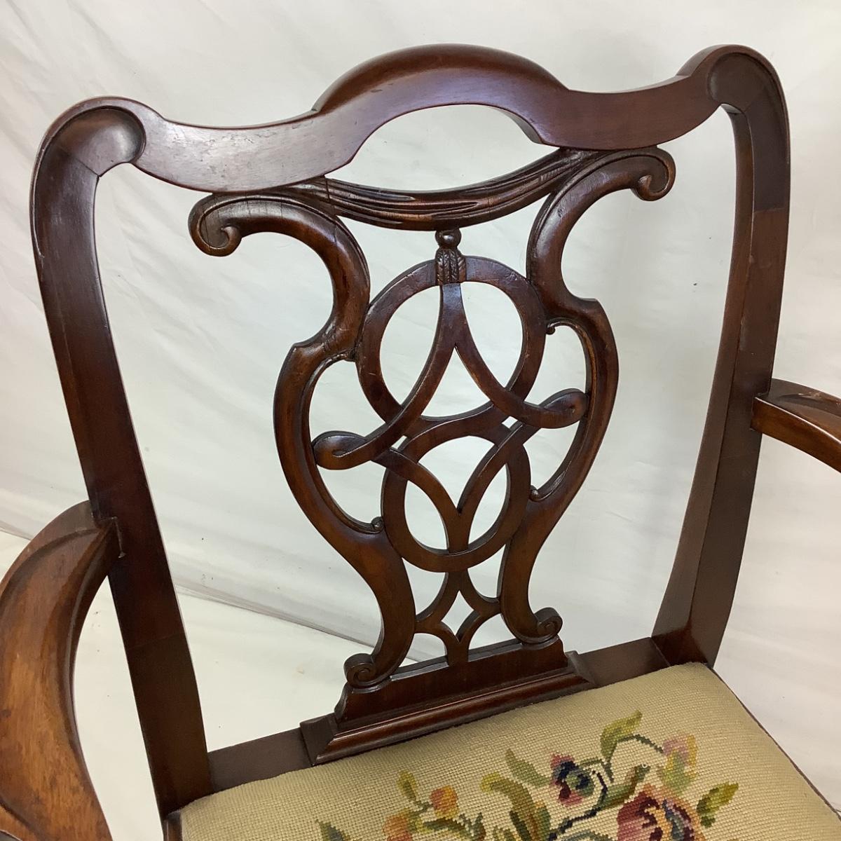 Lot.6173. Chippendale Style Antique Mahogany needlepoint arm chair