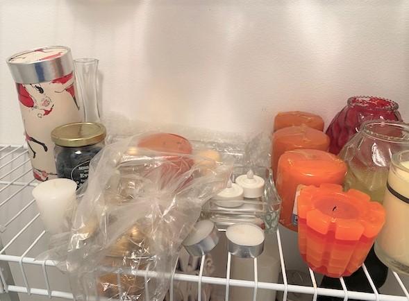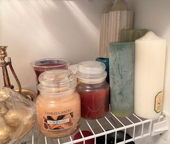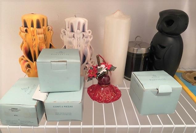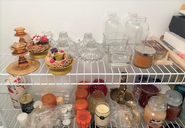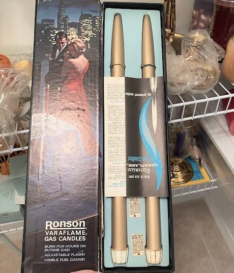 Assorted (most appear unused) candles, snuffers & Ronson EverFlame Gas Candle