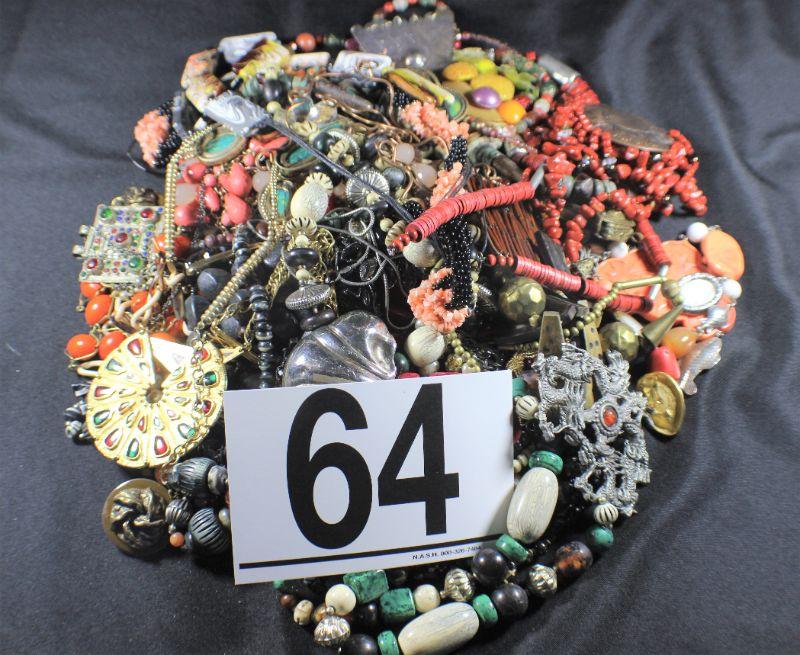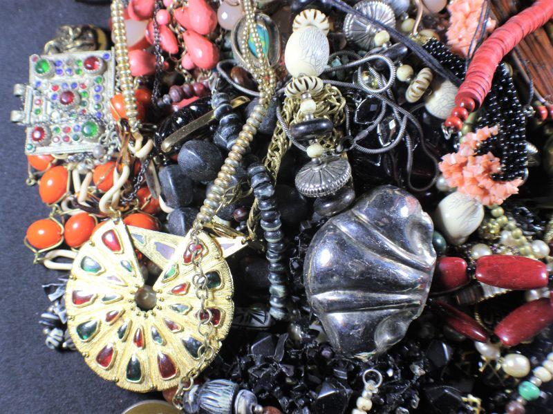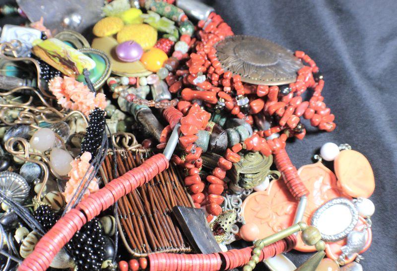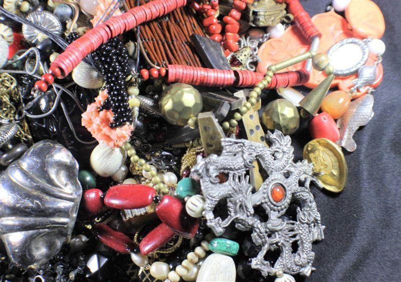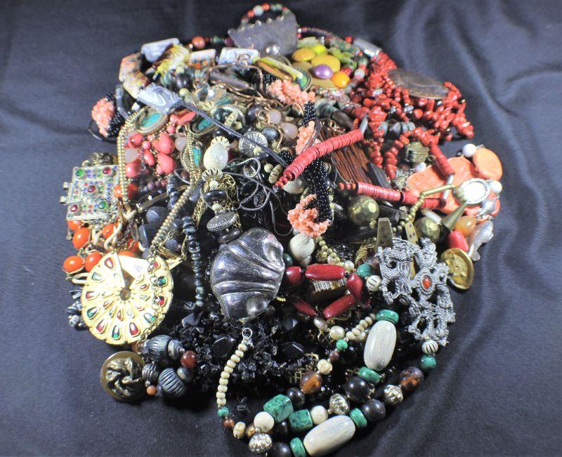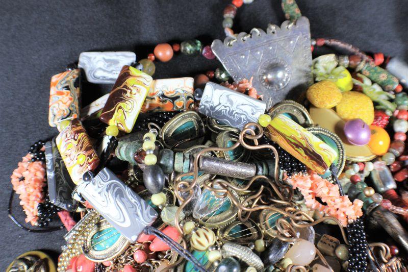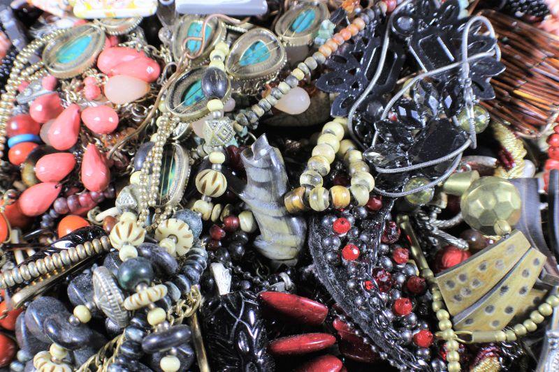Mixed Assortment of necklaces, earrings & more. Bag size: 2.5 gallons. Estimated total lot weight: 8 lbs