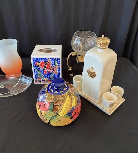 Includes tissue box, cordial set, drip glaze bowl, and more.