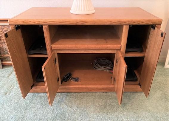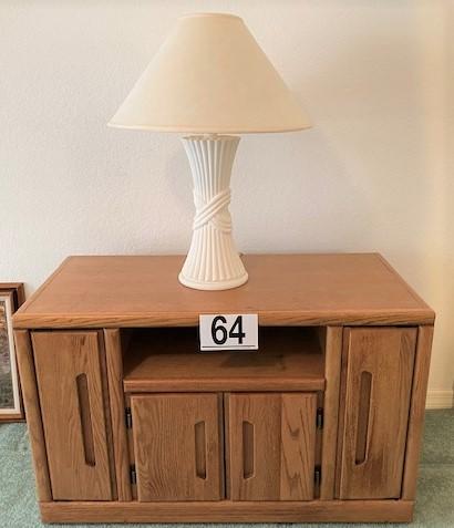 LOT#64LR2: Oak Color Entertainment Table w/ Lamp