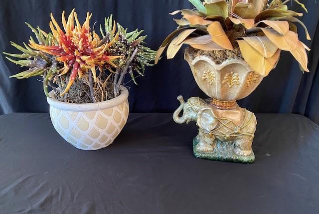 One vase has elephant pedestal. Estimated weight of lot: 10 lbs. Measurement: 32"H x 13"W (largest)