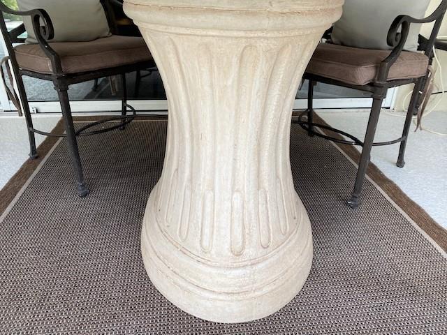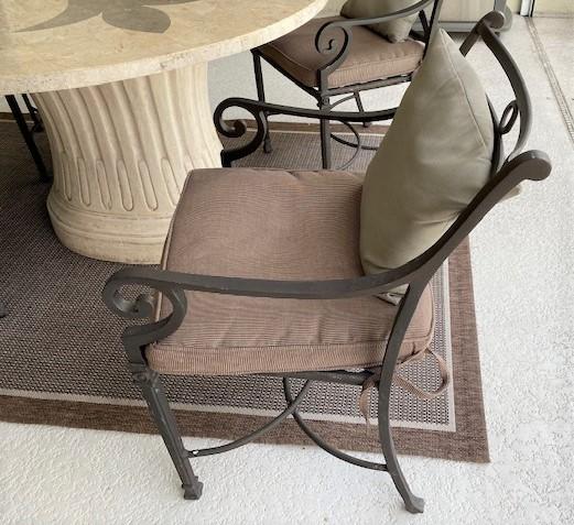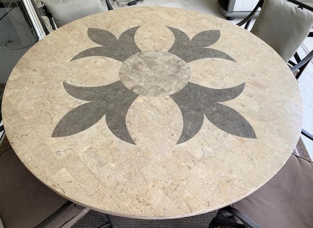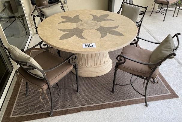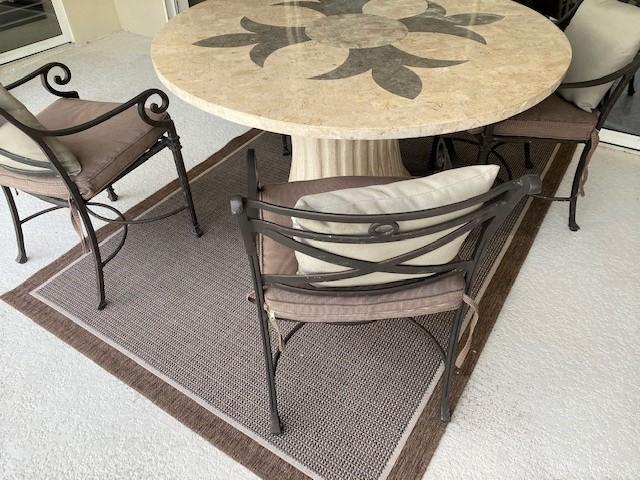 LOT#65P: Inlaid Patio Table, 6 Chairs & Rug