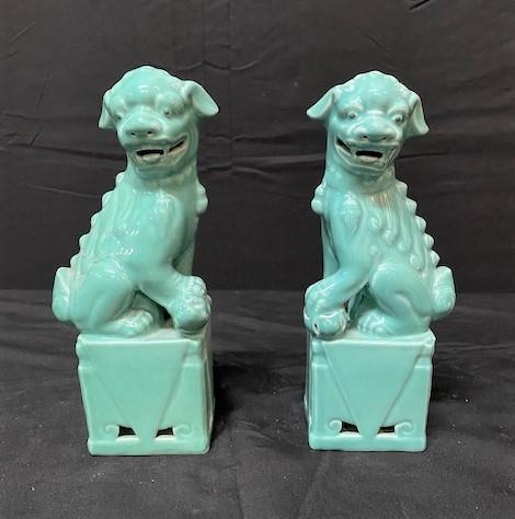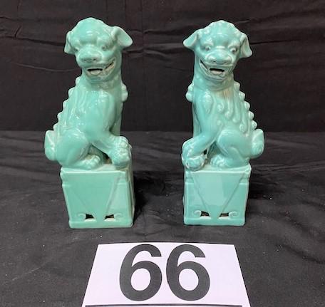 LOT#66: Labeled "BH of Taiwan" Glazed Ceramic Foo Dogs