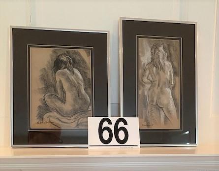 LOT#66D: Robert Goldman Signed Nude Charcoals