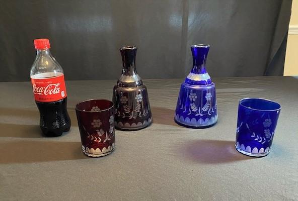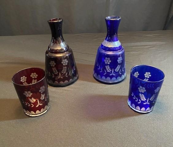 Decanters & glasses. Quantity 4. Measurement: 8"H x 4 1/2"W