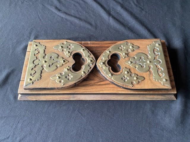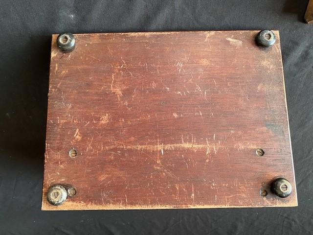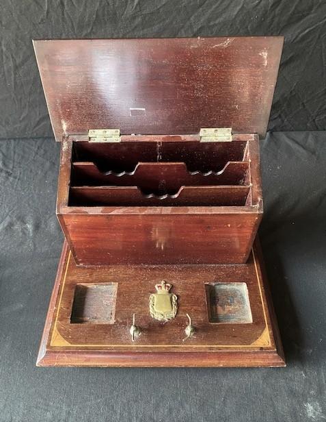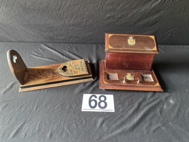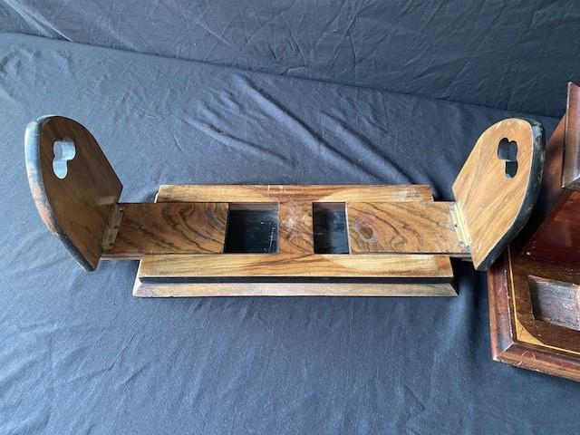 Believed to be mahogany. Bookends are adjustable. Inkstand is missing inkwells. Estimated weight of lot: 5 lbs. Measurement: Longest: 15" Tallest: 8 1/2"