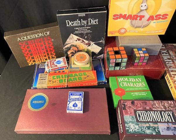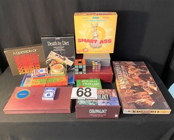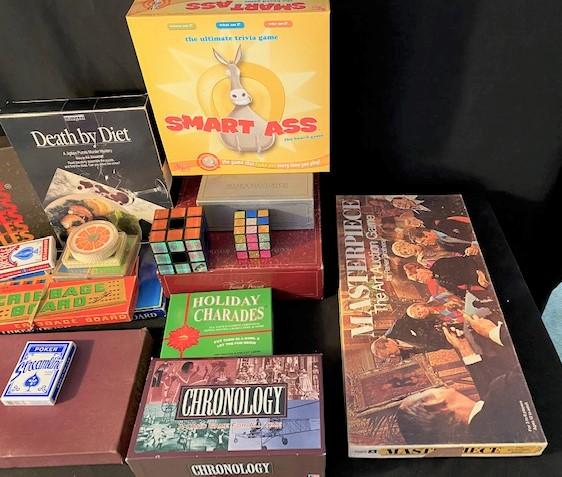 Masterpiece, Smart Ass, Scrabble & more. Estimated weight of lot: 15lbs. Measurement: 20" x 11" (largest)