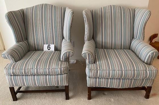LOT#6LR: Pair of Hepplewhite Style Winged Chairs