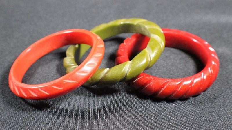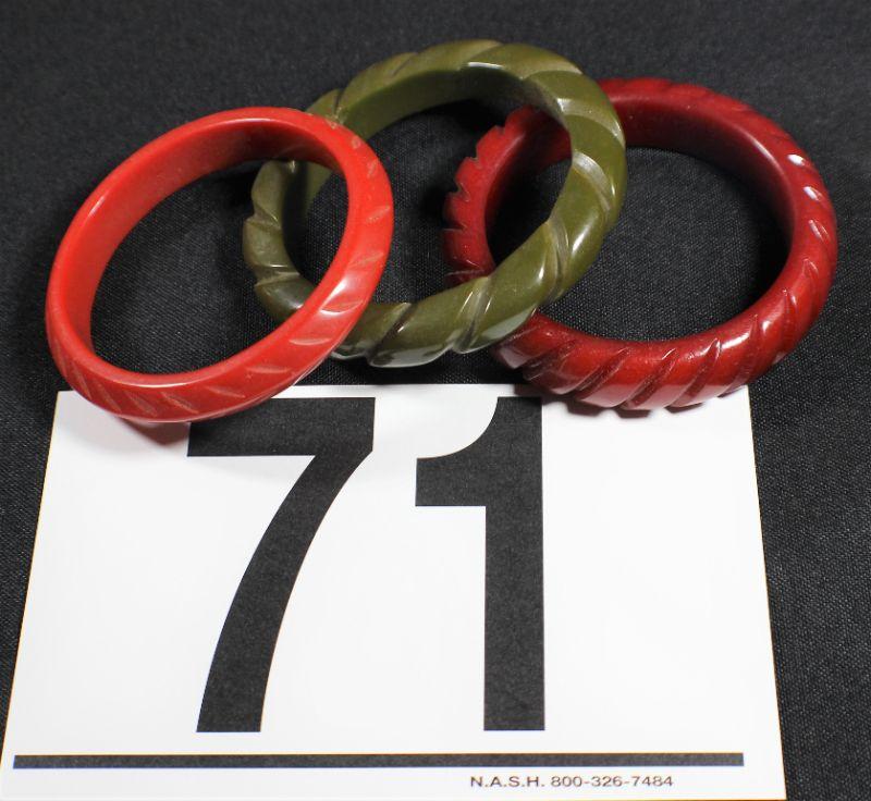 LOT#71:Carved Bakelite & Catelin Bangle Bracelets