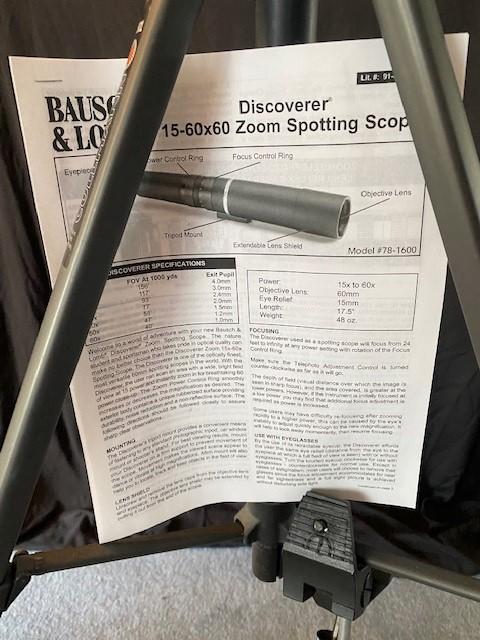 LOT#72LR: Bausch & Lomb Discoverer Spotting Scope 15-60x60