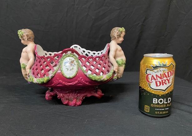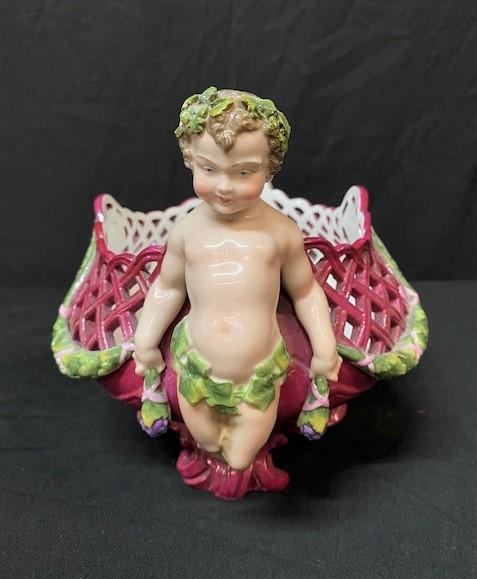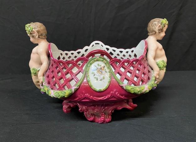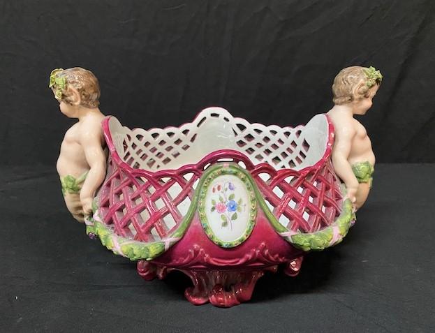 LOT#73: Meissen Porcelain Pierced Basket with Pan Figures