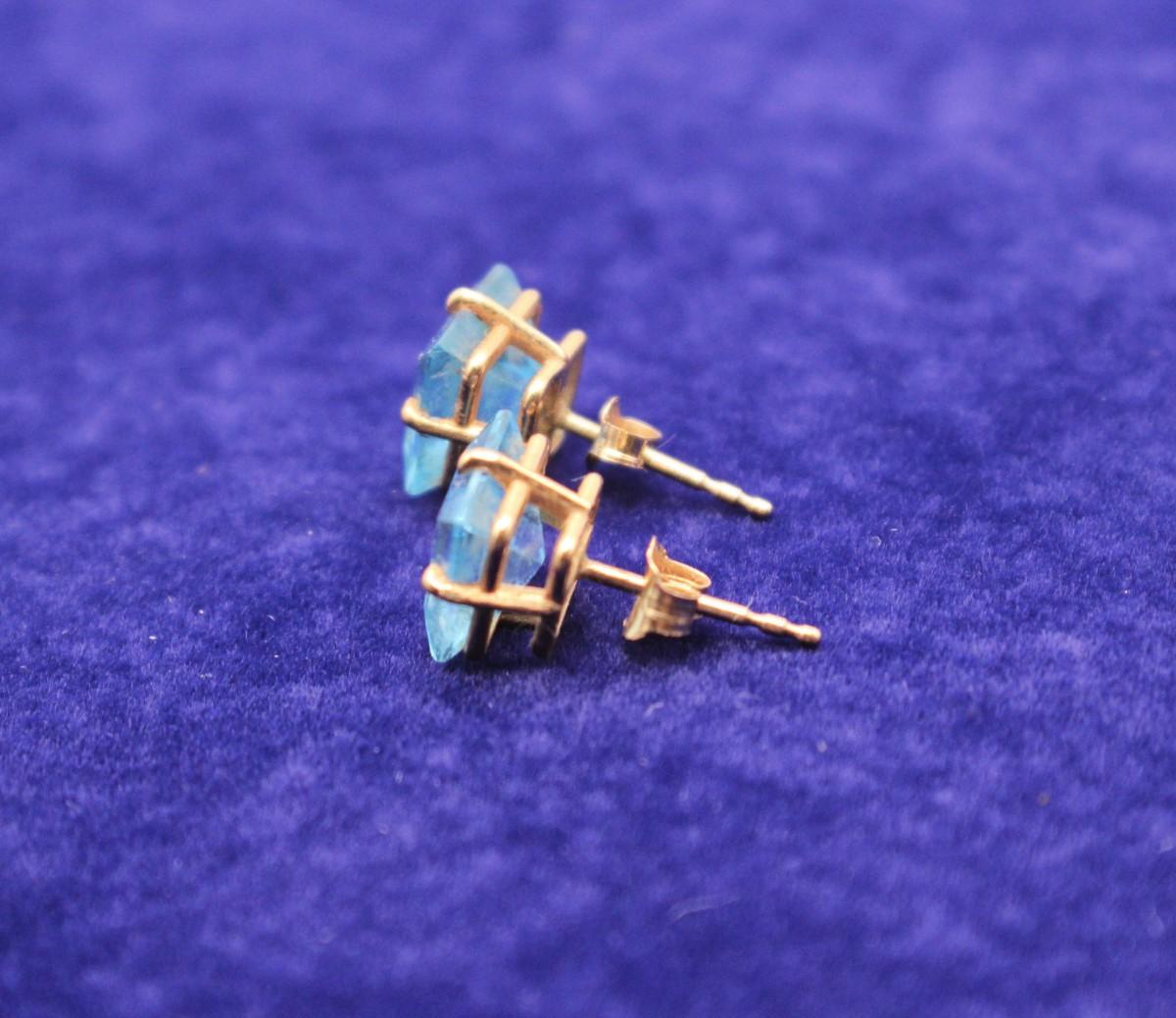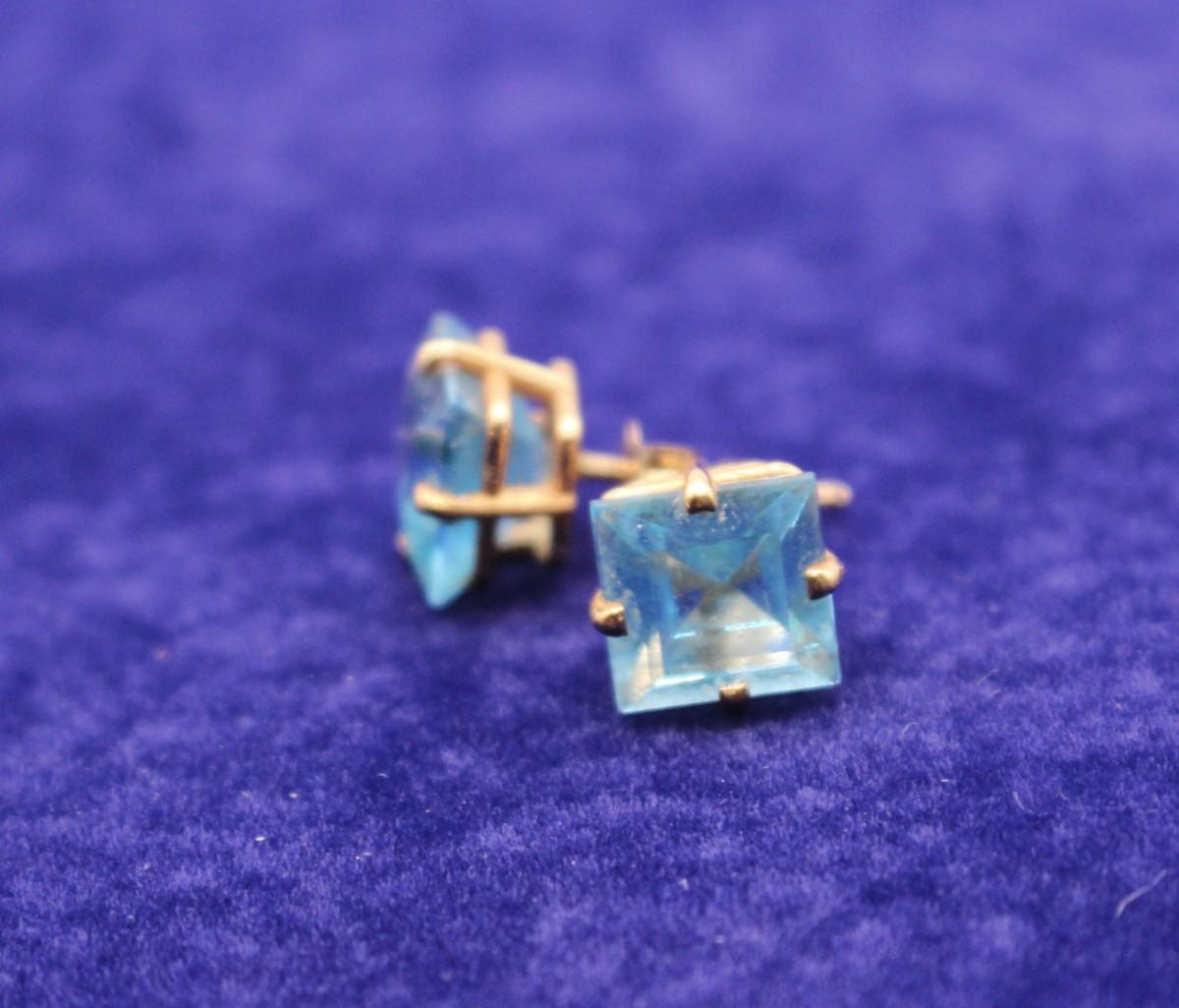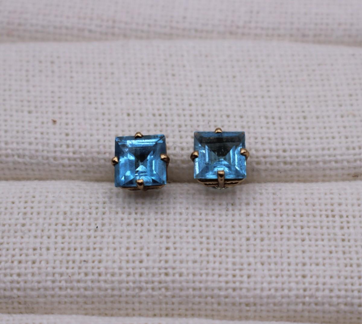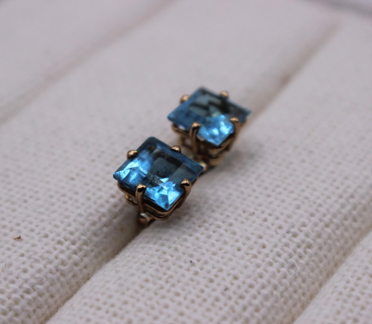 LOT#73: Stamped 14K 2 carat Blue Topaz Earrings [1.45g]