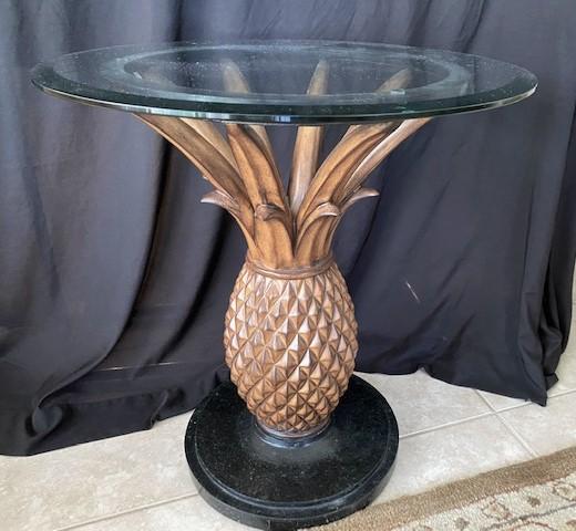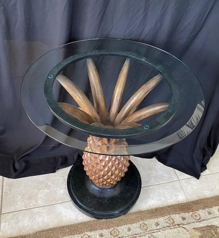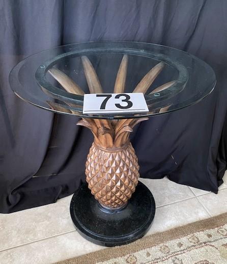 LOT#73LR: Glass-Top Occasional Table with Pineapple Base