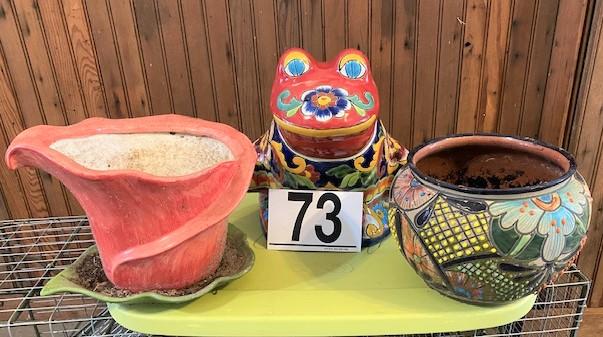 LOT#73SU: 3 Piece Glazed & Painted Pot Lot