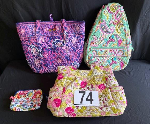 4 bags. Includes: a crossbody bag, 2 totes & a makeup case.