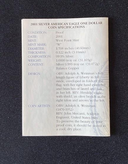 LOT#75: 2001-W American Silver Eagle Proof Lot #1