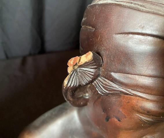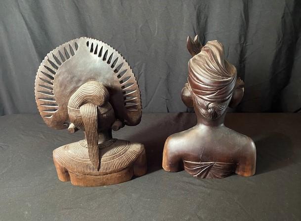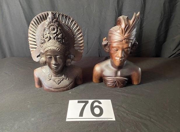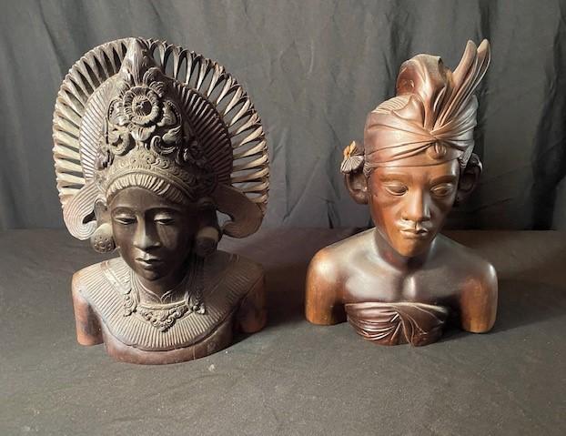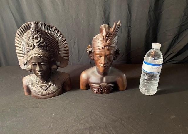 One believed to be Buddhas. Both believed to be southeast Asian. One has damage to lotus flower. Estimated weight of lot: 10lbs. Measurement: 11"H x 8"W (largest)