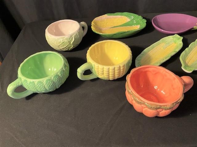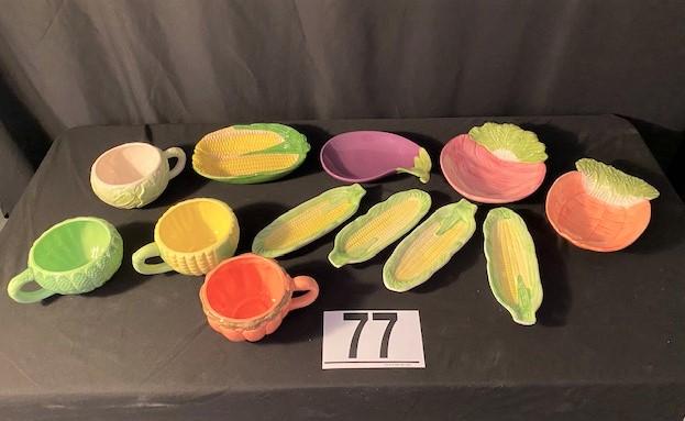 LOT#77LR2: Assorted Ceramic Vegetable Theme Bowls & Cups