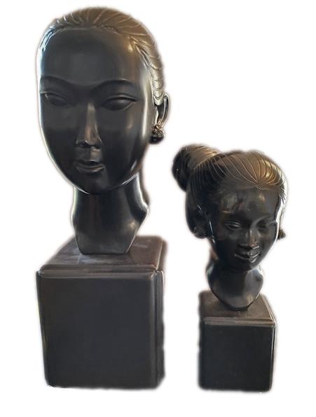LOT#78LR: Pair of Vietnamese Lacquered Busts by Thanh Le