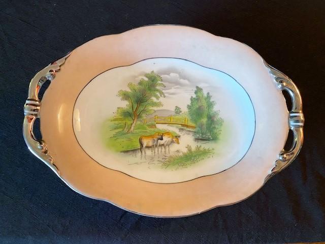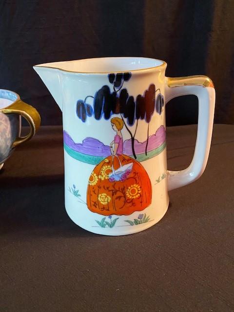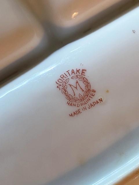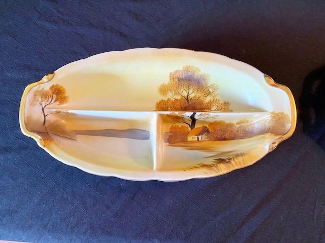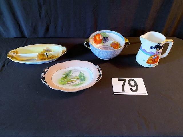 Vintage. All believed to be hand painted. Includes pitcher, relish dishes, and bowl. Total of four pieces.
