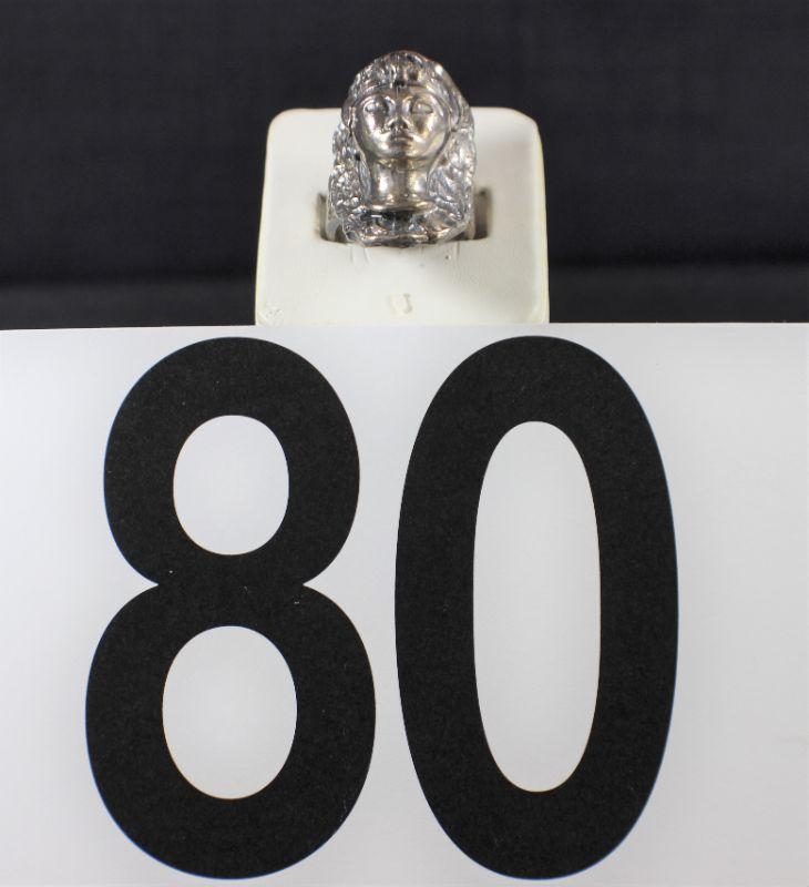 LOT#80: Marked Sterling Ring with Egyptian Motif 18.7g