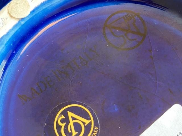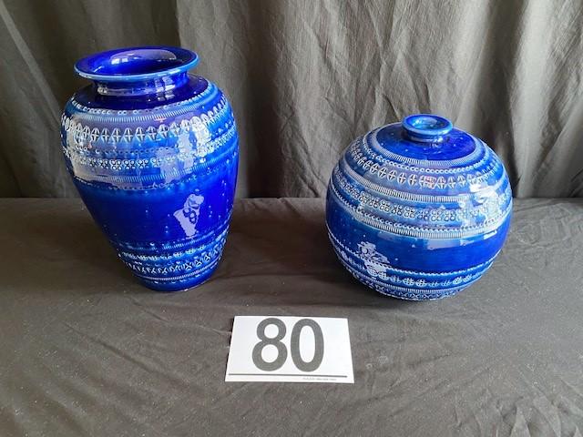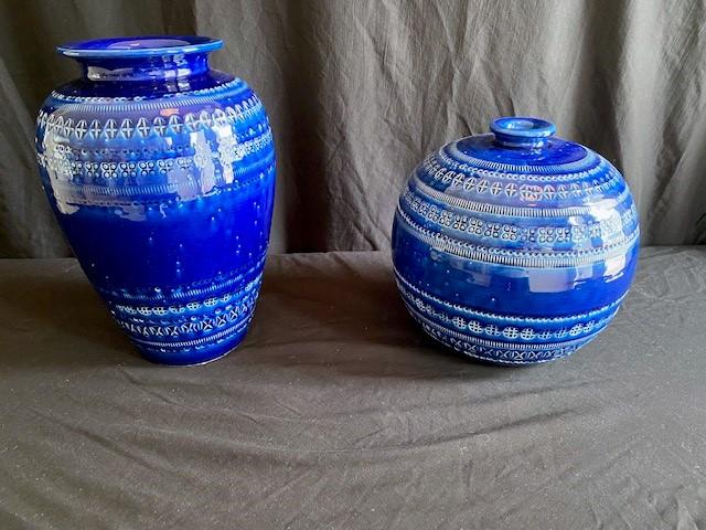 2 cobalt blue vases. Measurement: 12"H x 9"diameter (at widest point) [Tallest vase]