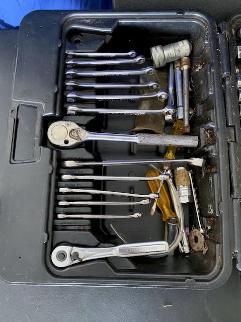 Includes assorted ratchets, combination wrenches, and more.
