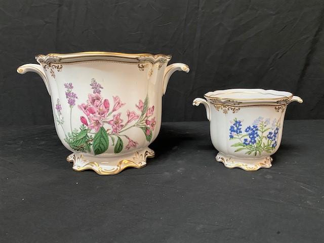 One is Campanula; other is Pentstemon. Estimated total lot weight: 5lbs. Measurement: 6 1/2"H x 11"diameter (largest)