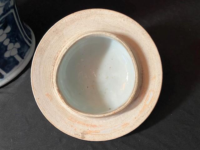 LOT#81LR: Blue & White Porcelain Covered  Jar w/ Foo Dog Finial