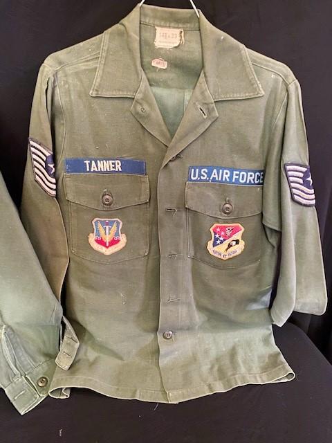 With Tactical Air Command patches. Starched and stored. Size 14 1/2 x 33