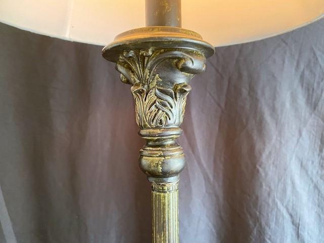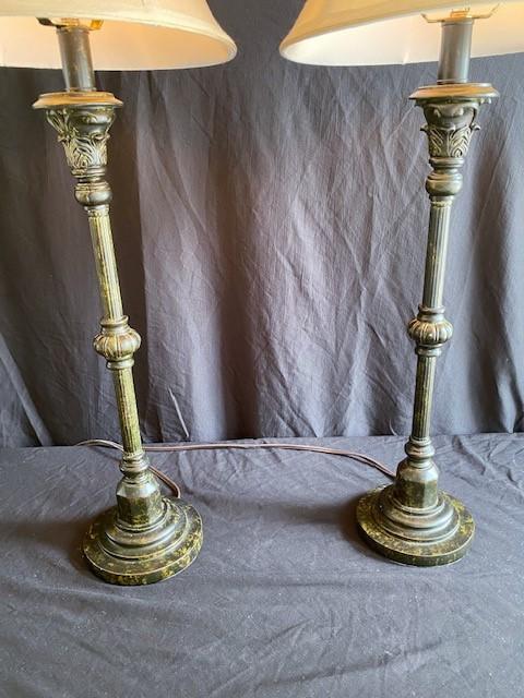 Tall patinated metal bases. Measurement: 32"H (each)