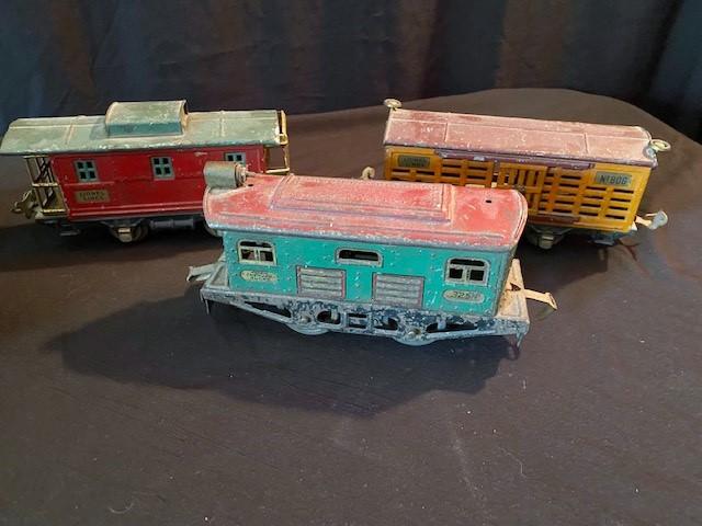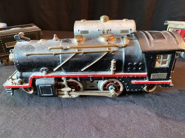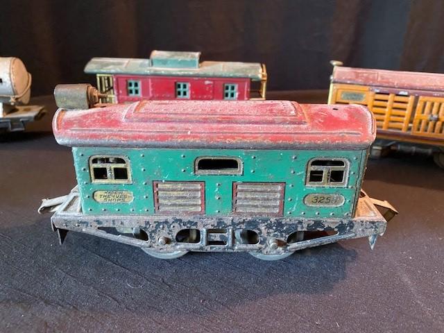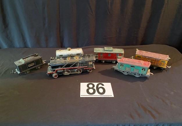 Includes locomotive, tanker, coal truck, cattle car, and caboose, and more. Total of six.