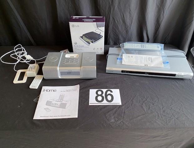 LG External DVD Writer, iHome system, & Sony DVD Player. All untested; sold AS IS.