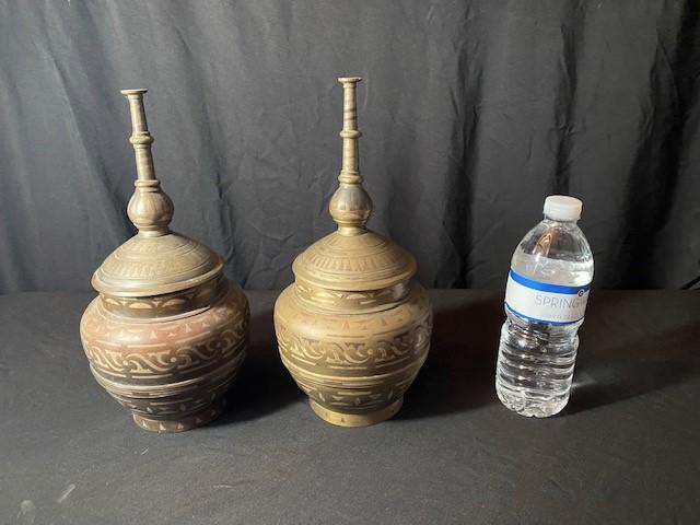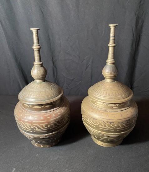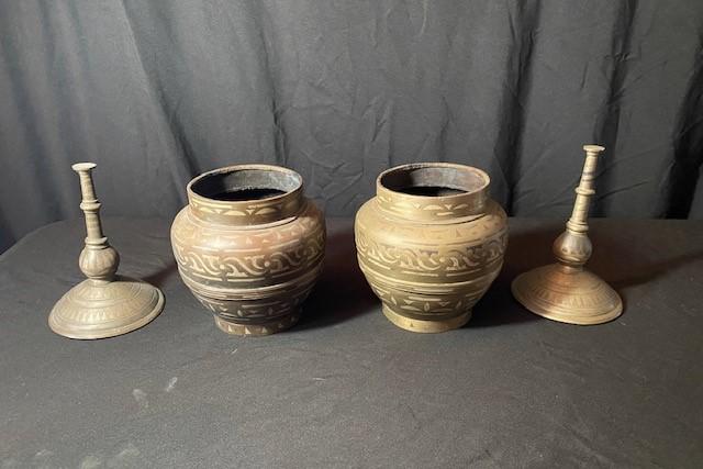 Champleve style. Estimated weight of lot: 5lbs. Measurement: 12"H x 5 1/2"diameter (each)