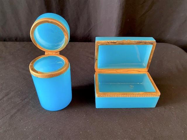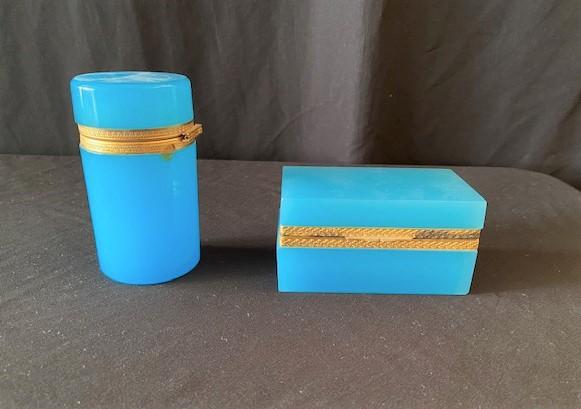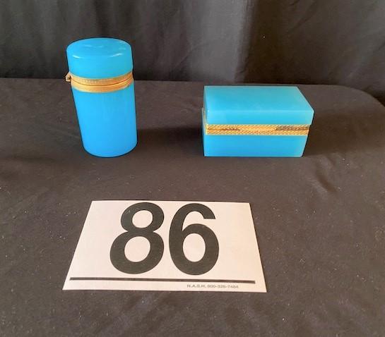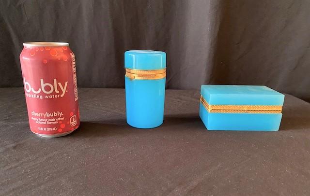 1 cylinder; one trinket box. Estimated weight of lot: 5lbs. Measurement: 4 1/2"H (cylinder) x 4 1/2"W (trinket box)
