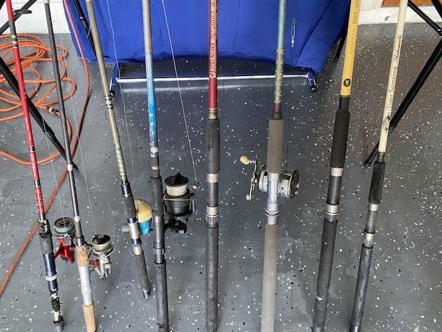 Includes Penn, Shakespeare, Daiwa, and more. Total 8 rods and 5 reels.