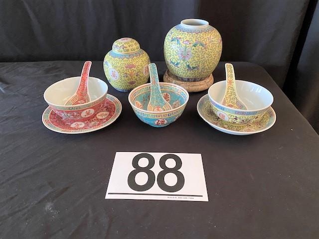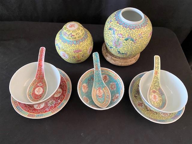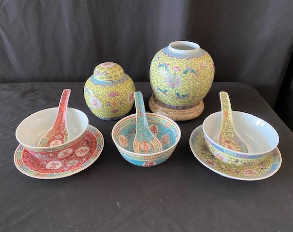 Includes: ginger jars & soup bowls. Estimated weight of lot: 5lbs. Measurement: 5"H x 5"W (ginger jar)