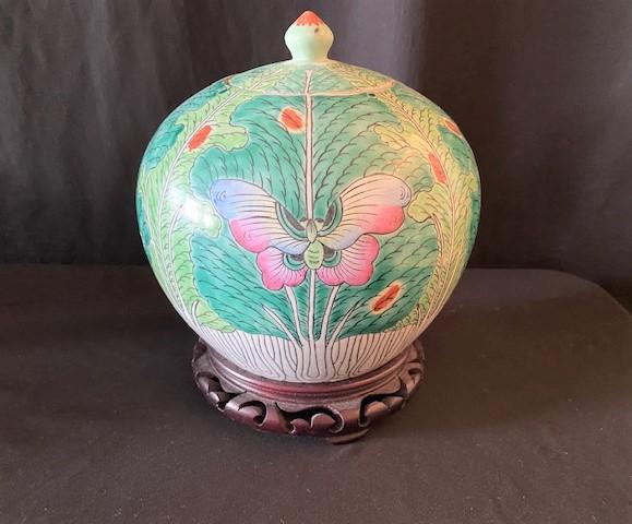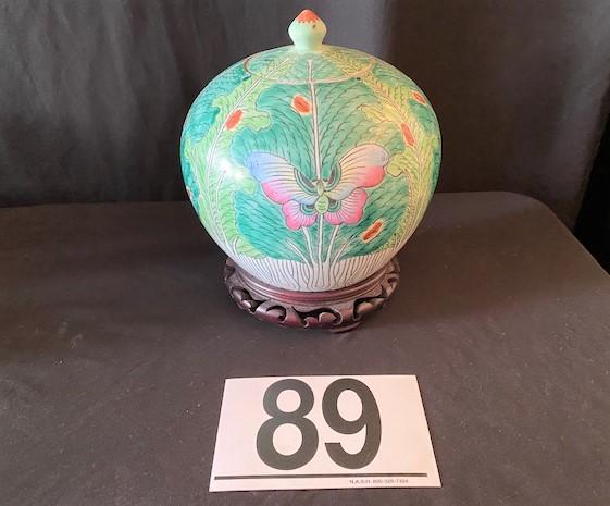 LOT#89LR: Large Chinese Nouveau Style Covered Ginger Jar